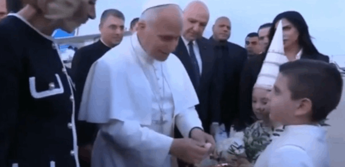 كما قدّم طفلان من مركز سرطان الأطفال باقة ورد وخبزاً وملحاً وتراباً من لبنان إلى البابا لاوون فور وصوله إلى مطار رفيق الحريري الدولي، وذلك في تقليد رمزي بروتوكولي يستخدم في مناسبات دينية ورسمية عند استقبال شخصية روحية كبرى مثل البابا، وله دلالات عميقة في الثقافة اللبنانية والمسيحية.